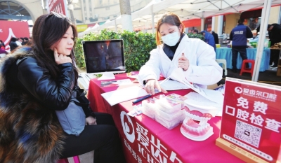 | 爱齿尔口腔现场为居民检查牙健康。 |
