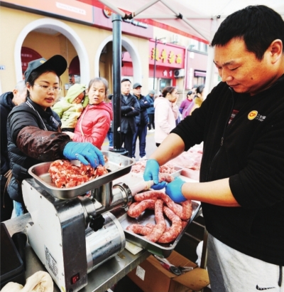 | 现场灌香肠。 |
