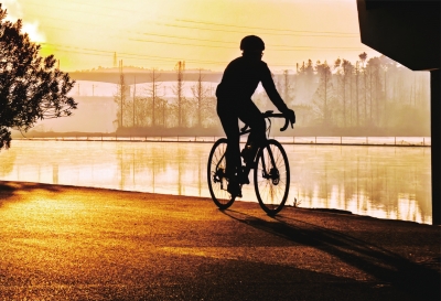 12月14日,骑行爱好者在武汉市东湖风景区骑行。