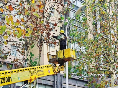 “我们主要是对遮挡信号灯、路灯的法桐进行高空修剪。”现场负责人陈先生介绍,“法桐长得快,夏天才修过,后期我们会加强定期巡查,遇到分枝增长过快的情况也会及时修剪。”
