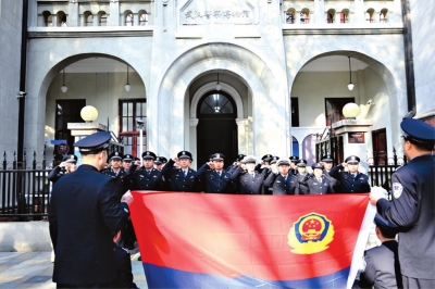 在武汉警察博物馆大门前,全体民警面向鲜艳的警旗,举起右拳,重温入警誓词。“我宣誓……”铿锵有力的誓言划破长空,字字千钧,叩击心扉。这不仅仅是一次仪式,更是一次对初心的回溯和对使命的郑重确认,将历史的厚重与当下的责任紧紧联结。