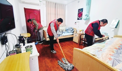 | 龙灯社区“来滴红先锋志愿服务队”到月湖惠养老院给老人们做清洁。 |