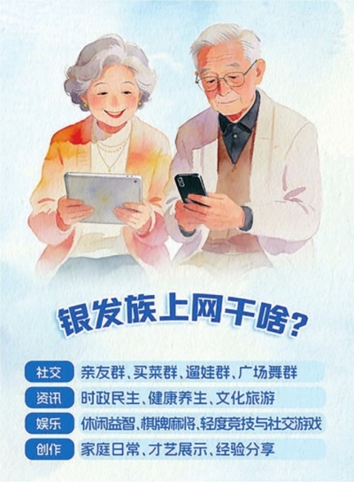 “随着家庭结构小型化和退休后社交圈的收缩,互联网成为老年人对抗孤独、维持社会连接的重要通道。”中央民族大学社会学系副教授范叶超说,除了便利生活,上网更是为了重新确认自我价值。