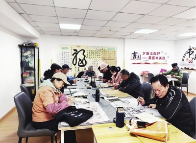 每周一清晨的居民客厅,八段锦教学成为“银发一族”的晨练新风尚。在党员刘忠慧的带领下,居民们舒展筋骨、调和气息,既强健了体魄,又拉近了邻里距离。每周三上午的“盛世社区读书会”则是一道温暖的风景线:刘忠慧发起的读书社团吸引60余名居民参与,从《优雅地老去》到《不负时光,做更好的自己》,琅琅书声与茶艺芬芳相映成趣。茶艺爱好者柯红现场展示冲泡技艺,居民们在茶香书韵中交流心得,曾经的“陌邻”逐渐成为“睦邻”。2025年6月启动书法课掀起学习热潮——退休人员、少年儿童与书法爱好者齐聚,挥毫泼墨间感受传统书法的魅力。在辖区文化能人张其文的带领下,20余名居民自发成立的书法团队把社区书法室变为艺术沙龙,每天下午都聚集在此练习书法。
