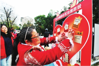| 社区居民在社区治理愿景板上贴上自己的心愿。 |