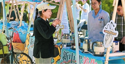 | 北京市民在健康主题活动中了解养生茶饮。 新华社发 |