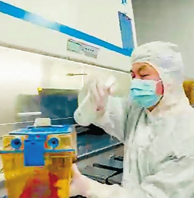 | 科研工作者给装有“太空小鼠”的盒子消毒。 |