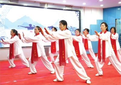 | 居民在社区舞台秀才艺、晒养生。 |