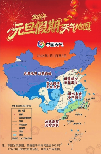 2026年元旦假期到来了,你准备如何度过?无论你是计划去北方体验冰雪乐趣,还是前往南方享受温暖阳光,天气都会对出行体验带来直接影响。中国天气网特别推出2026年元旦假期天气地图、重点城市雨雪进程表和大城市降温日历,助您了解各地假期天气及安全出行指南。