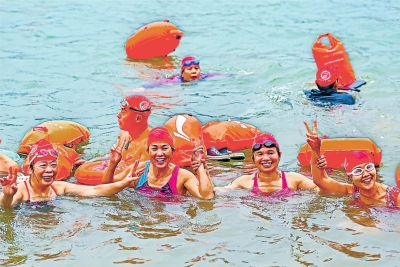 | 1月1日,游泳爱好者在南宁邕江畅游辞旧迎新。 新华社发 |