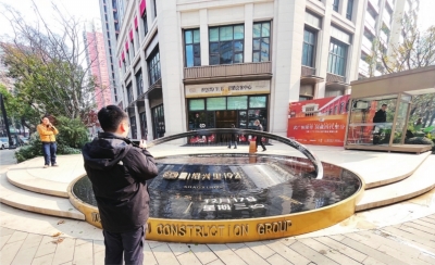 绍兴里门口的时光之环水景内,12个刻度环绕,咸安坊、同兴里等特色里份与建造年份一一呈现,仿佛在诉说着往昔的故事。复古红砖墙建筑前,年轻人纷纷驻足拍照,感受这份独特的韵味。