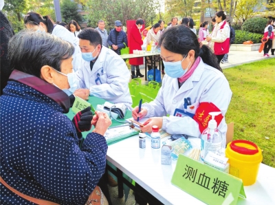 | 社区联合卫生服务中心为居民开展义诊服务。 |