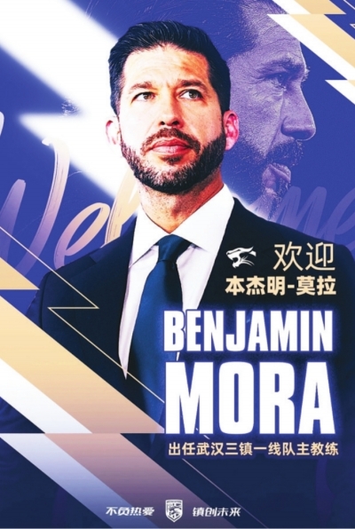 武汉晚报讯(记者马万勇)武汉三镇队再次迎来新帅!1月2日,武汉三镇俱乐部官宣:墨西哥籍教练本杰明·莫拉即日起正式出任武汉三镇足球俱乐部一线队主教练,上赛季临危受命率队保级的代理主教练邓卓翔则出任俱乐部体育总监一职,全面负责俱乐部竞技层面的长期规划、体系建设与管理工作。