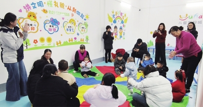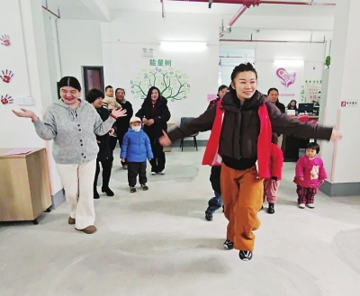 专业早教老师带领宝贝们玩转趣味手指律动操,在欢快的节奏中锻炼着协调能力;经典儿歌童声朗朗,纯真的笑容在孩子们脸上绽放;互动游戏妙趣横生,家长与孩子协作闯关,默契与欢笑同步升温;亲子共读区一片温馨静谧,依偎的身影间流淌着陪伴的暖意。最具节日氛围的,当数亲子“恭喜发财舞”现场教学,在社区舞蹈老师张艳的带领下,大手牵小手,舞步虽稚嫩却格外真诚,跳出了对新年的美好憧憬,也跳出了家庭与社区的和谐乐章。