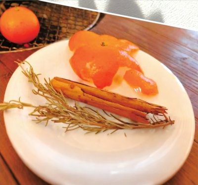 | 橘皮、肉桂皮、风干的迷迭香混合使用,制成香薰。 |