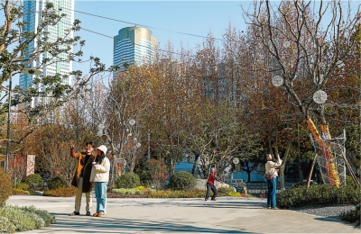 | 开放式沿街空间成了市民喜欢的“家门口的公园”。 记者冷靖华 摄 |