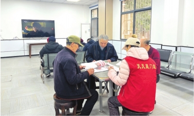 | 居民们在社区取暖点读报看电视。 社区供图 |