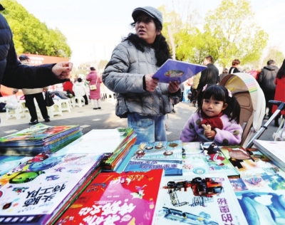 | 武汉新华书店文化市集惠民流动书展吸引家长和小朋友挑选新书。 |