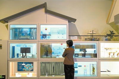| 北京市民在“中国制造‘十四五’成就展”上参观智能家居模型。 |