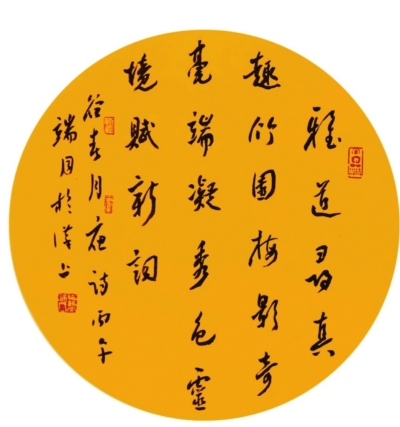 释文:雅道寻真趣,竹园梅影奇。毫端凝秀色,灵境赋新词。