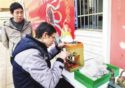 活动当天,便民服务区早早排起长队。磨刀师傅转动砂轮,为居民打磨刀具;手机贴膜、配钥匙、缝纫等服务展位旁,志愿者耐心解答、熟练操作,贴心服务居民。