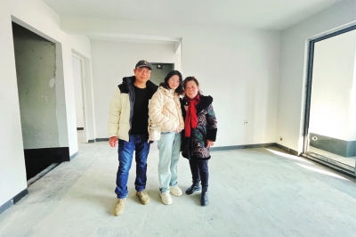 | 居民一家在新房合影留念。 记者冷靖华 摄 |