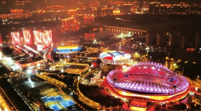 | 夜晚的武体中心灯火通明、人气十足。 |
