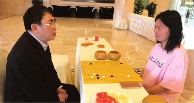 | 聂卫平(左)与鲁佳下指导棋 鲁佳供图 |