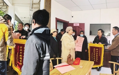 | 更换北苑小区21栋楼、56个单元楼道的灯具后,居民向社区送来感谢信和锦旗。 |