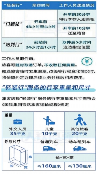 在同城距离车站35公里内,旅客根据实际需要可选择以下两种“轻装行”服务: