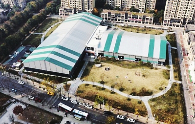 | 颐湖公园内的乐活自由时刻运动中心俯拍图。 记者范芃 摄 |