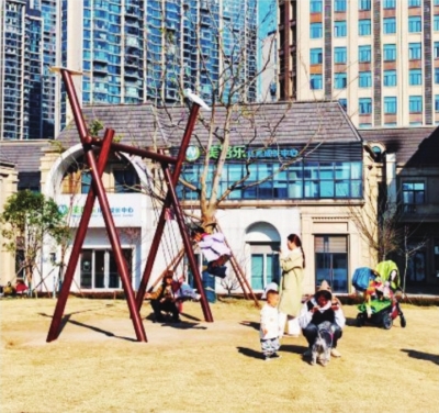 中午吃完饭,翁女士会带着6岁的孩子来到草地。孩子在草坪上奔跑,她自己则沿着步道慢走几圈。“不一定是为了锻炼,就是下楼透透气。”翁女士说。