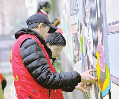 1月17日清晨8时,师生细心勾勒线条,精心调和色彩,效果图中智慧便捷的社区生活、和谐融洽的邻里场景跃然“墙”上,赋予墙体新的生命。“这就是我们身边实实在在的变化。”绘制过程成了社区独特的风景线,吸引众多居民驻足观看并结合画作讲述家门口的变化。
