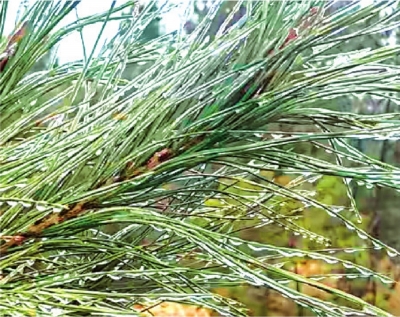 | 武汉北部山区,松枝上凝结细碎的冰珠。 通讯员周晓建 摄 |