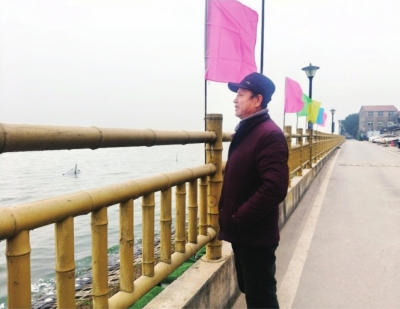 | 63岁的刘忠武,最喜欢在家门口眺望汤逊湖。 记者刘海锋 摄 |