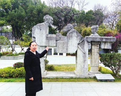 | 《知音》雕塑从园内移到园外广场。 记者金文兵 摄 |