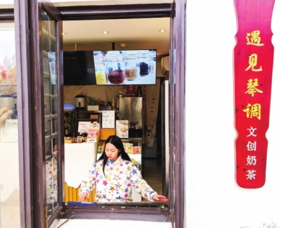 19岁的赵嘉慧子,将一杯“高山流水”网红奶茶递给游客,茉莉花香随着琴音漫开。这位就读于广东一所艺校的武汉姑娘,已在古琴台文创店度过三个寒暑假。“没客人时,我就抚琴。”1月18日,在古琴台的“遇见琴调”文创奶茶店中,她轻拨琴弦,“高山流水”的悠然,千年知音的故事,就在茶香中苏醒。