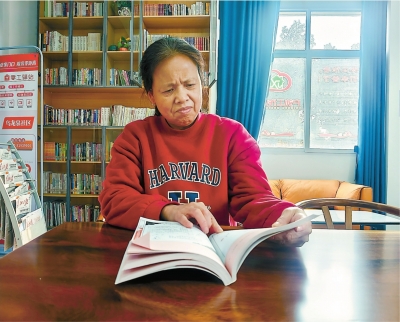 | 毛静丽在街道共享书屋看养生类书籍。 记者刘海锋 摄 |