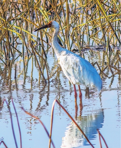 | 沉湖湿地鹤立浅滩。 魏斌 摄 |