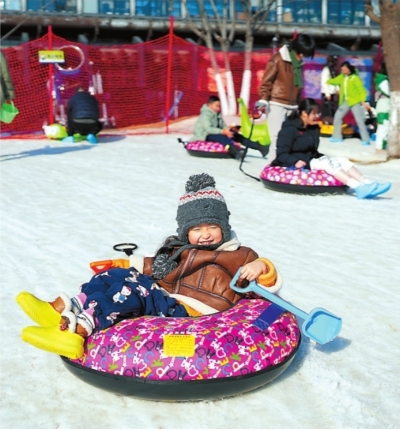 | 儿童在杭钢公园冰雪嘉年华玩雪。 |