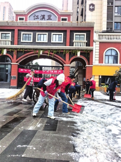 | 江汉里社区扫雪齐行动。 |