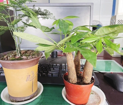 | 文竹与发财树为家里增添不少生气。 |