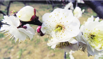 岁暮天寒,月湖公园的草木褪去葱茏,唯有蜡梅园旁的梅花,在料峭寒风中绽放。霜雪落于虬曲枝丫,粉白、嫣红的花苞迎着寒意舒展,为江城寒冬晕开一抹亮色。