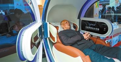 | 深圳一位老人在银发消费品牌展区体验智慧康养产品。 新华社发 |