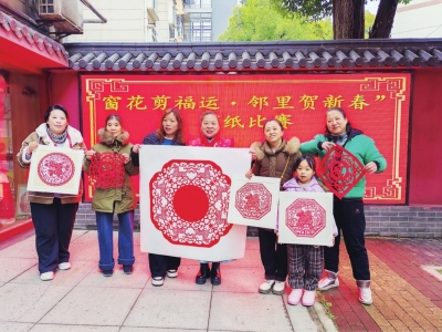 123社区将非遗剪纸融入节日。在非遗传承人彭艳华老师指导下,居民们用剪刀将红纸变成“福”“春”“团圆”等吉祥图案。活动结束后,社区志愿者带着这些满载祝福的剪纸和热气腾腾的腊八粥,敲开独居老人和困难家庭的门,将节日的关怀送到他们手中。