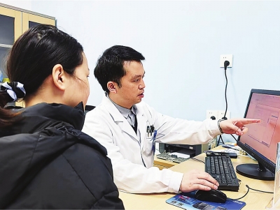 | 武汉市第五医院消化内科主任黄平晓对患者解释“按病组付费”报销政策。 |