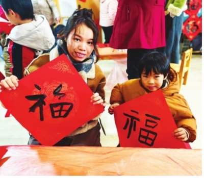 近日,东西湖区金银湖街道鑫桥社区联合彩虹树幼儿园开展迎新春写福送福活动,邀请老党员陈延林老师现场教学,退役军人张晓辉主动加入志愿者队伍全程参与,亲子家庭齐聚一堂,在笔墨书香与欢声笑语中喜迎新春,共叙温情。