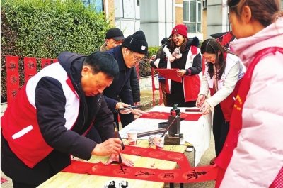 | 志愿者为居民书写春联。 |