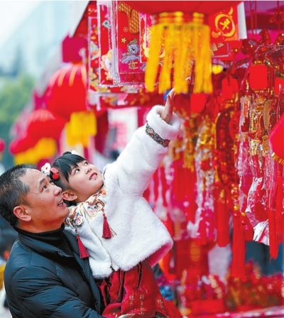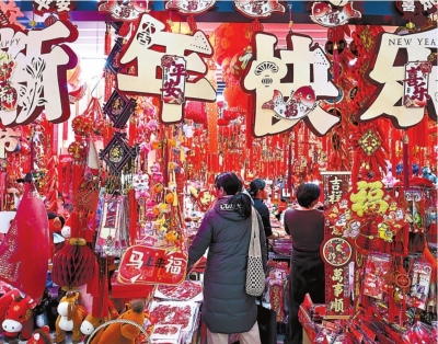 | 北京市民在购买春节装饰品。 新华社发 |