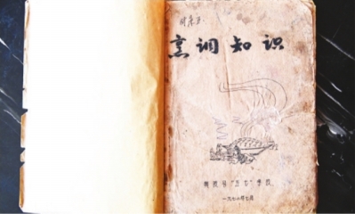 季关运打开保险柜,取出一个牛皮纸信封,从里面掏出用夹子夹住的锡纸袋,又从锡纸袋里拿出一本小册子。册子不厚,正中印着“烹调知识”四个字,落款是黄陂县“五七”学校,一九七二年七月。纸页泛黄,边角微卷。翻开,便是油印的一道道食谱,里面有“黄陂三鲜”的制作方法。